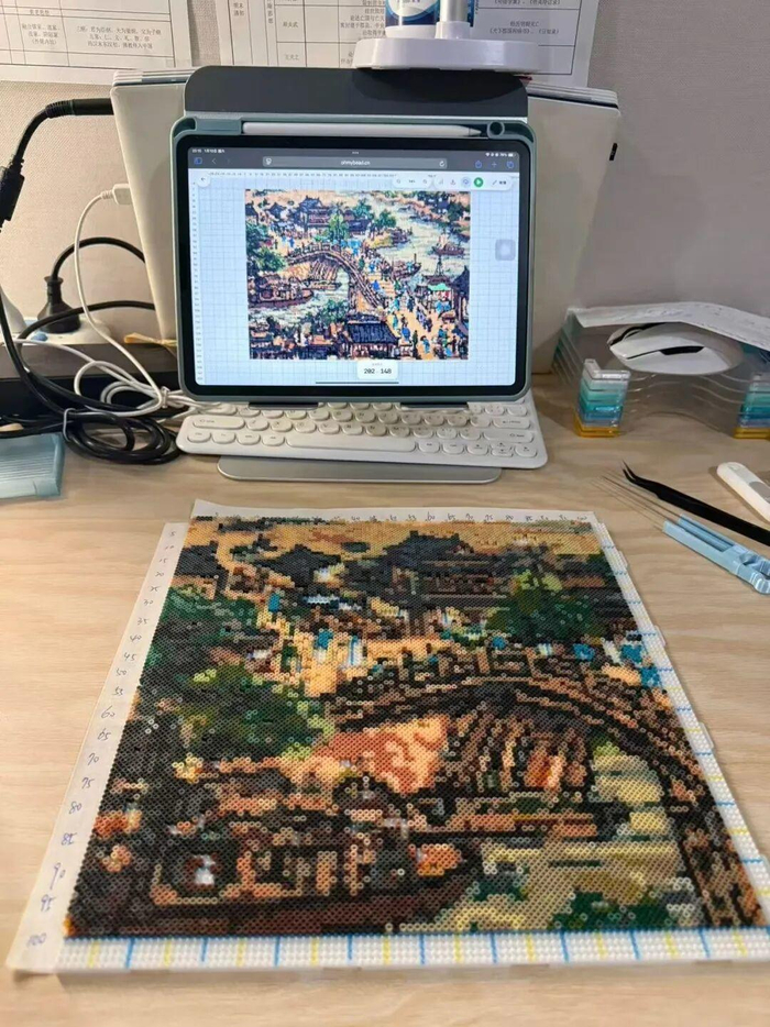 拼豆界進入“考研”時代,有人做3D立體花燈,有人拼出《清明上河圖》