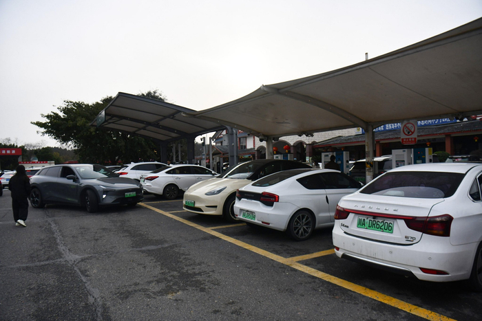 今年的春運路上,充電保障到底做得怎么樣?在京滬高速高郵服務(wù)區(qū),記者看到新能源充電區(qū)域標(biāo)識清晰、劃分規(guī)整。這里已經(jīng)完成了充電設(shè)施擴容,在原有40臺直流充電樁、64把槍的基礎(chǔ)上,新增26臺直流充電樁、46把充電槍。目前,高郵服務(wù)區(qū)充電槍總量達110把,其中包括6把600千瓦大功率液冷超充槍,充電總功率提升至8960千瓦,整體充電能力提高近七成,將有效緩解春運期間充電排隊問題。記者在現(xiàn)場看到,不少新能源車主正有序停車充電。